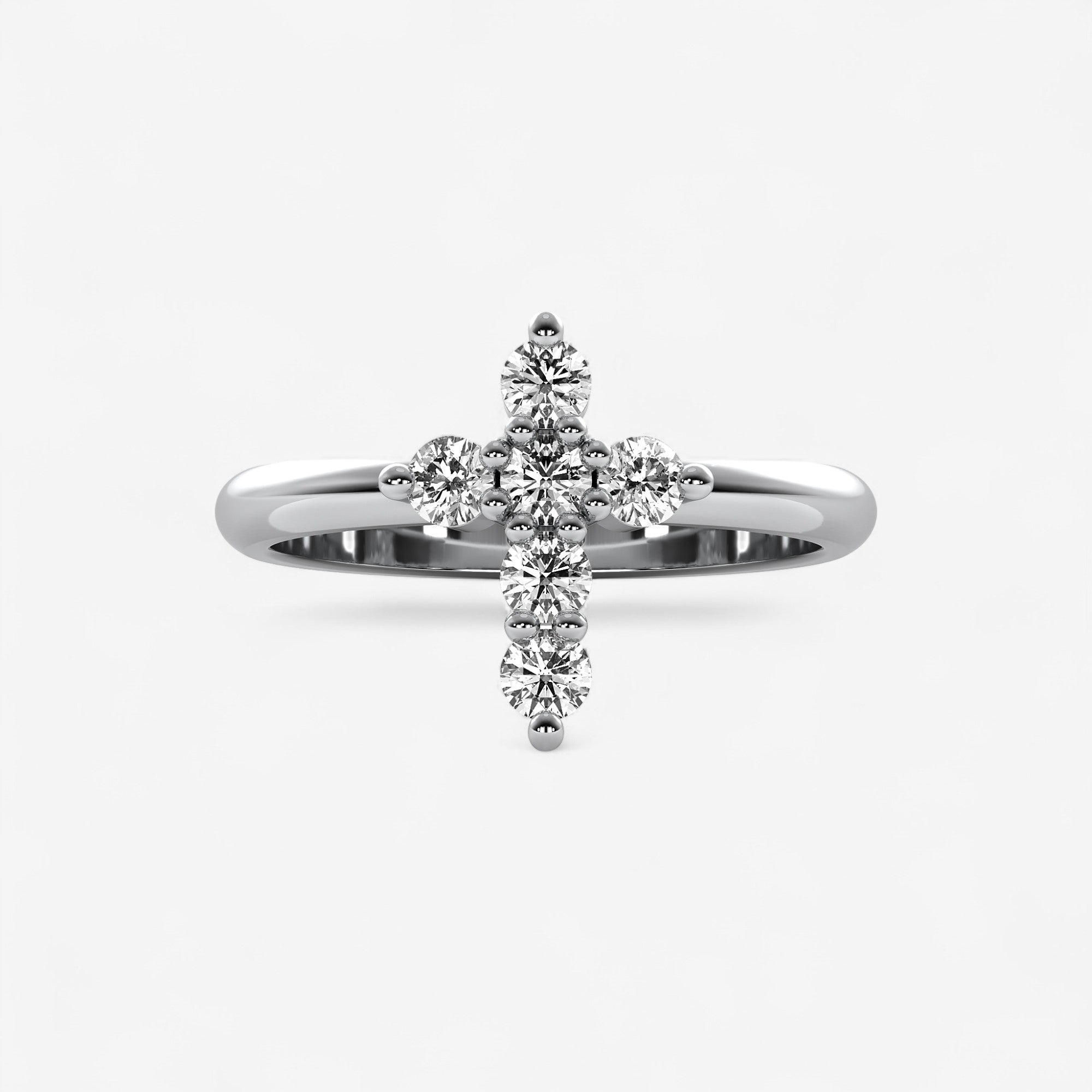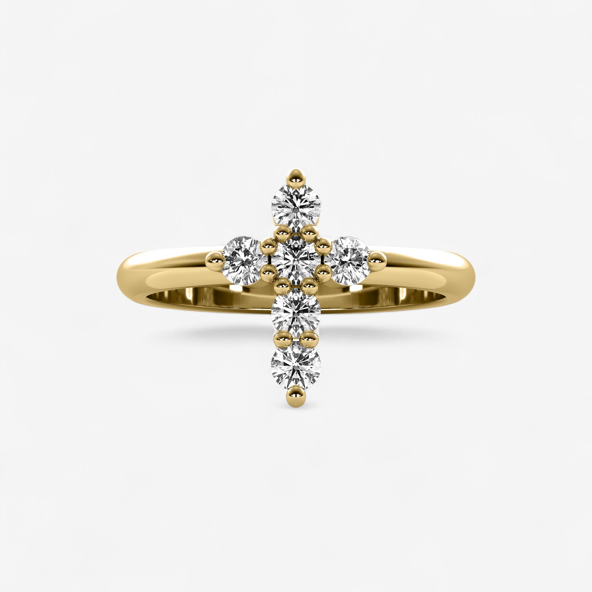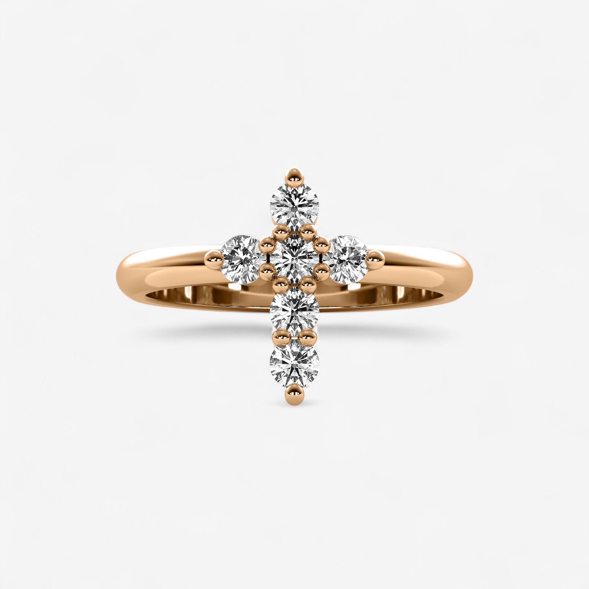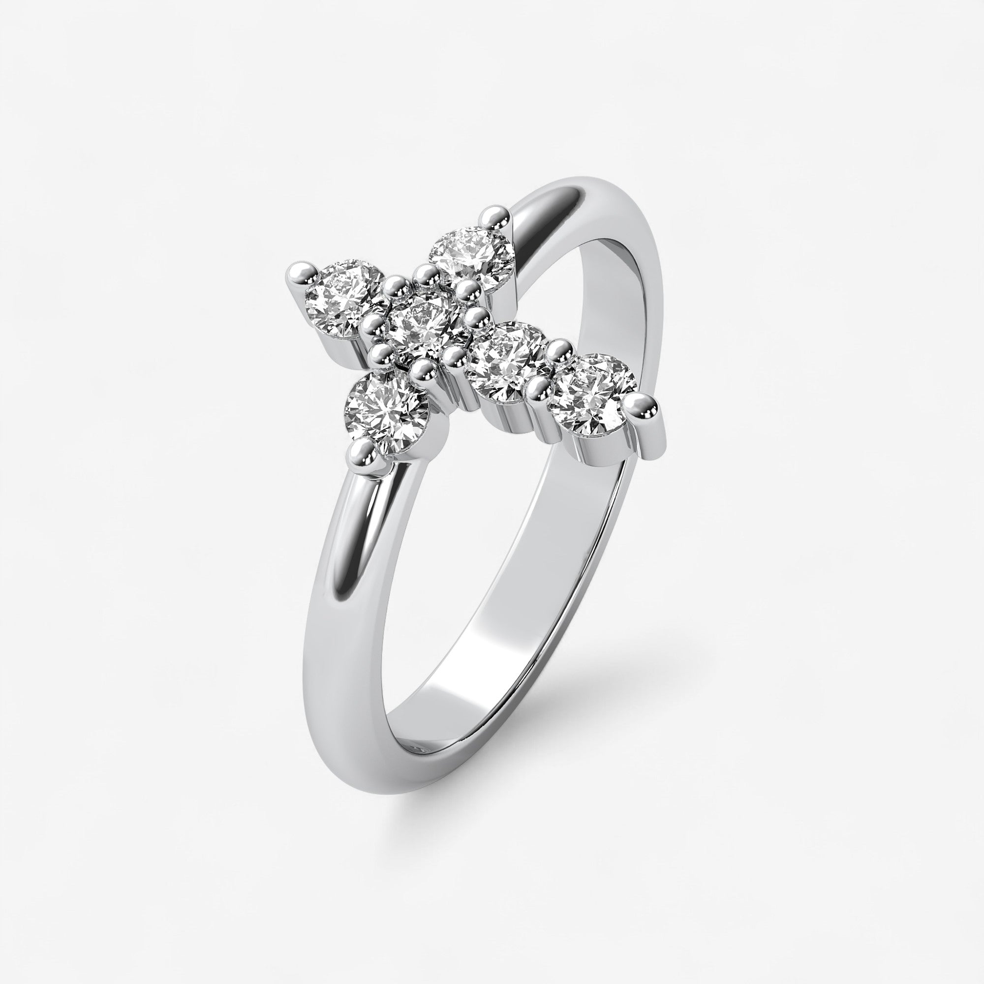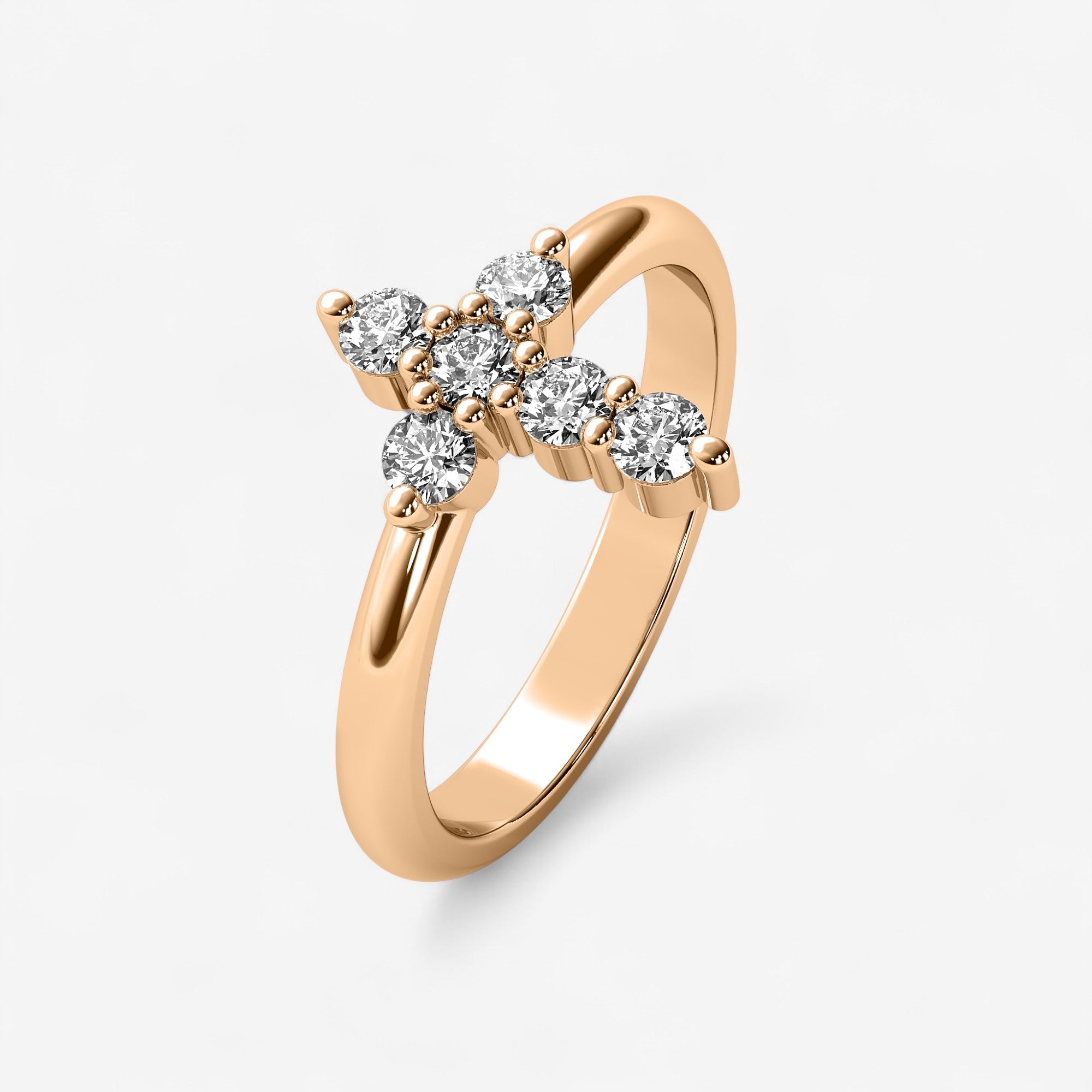 Indulge in timeless elegance with our Diamond Cross Ring. Crafted with six exquisite diamonds, this ring is a true beauty. Its intricate design and sparkling stones make it the perfect symbol of faith and luxury.