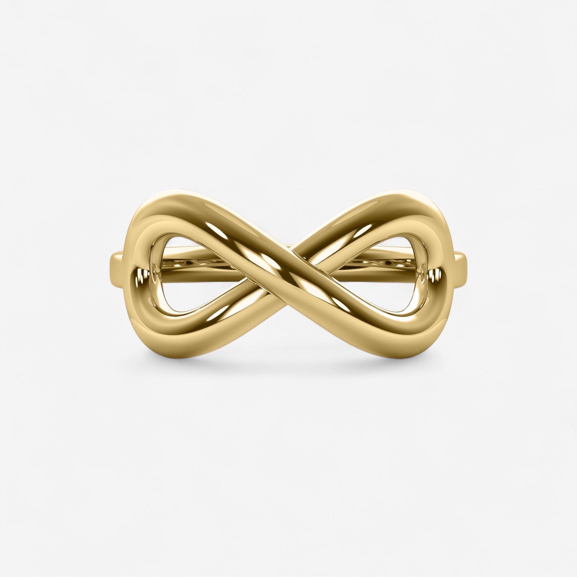 Indulge in timeless love with our Gold Infinity Ring. Its delicate, yet sturdy, design symbolizes endless devotion to your forever special someone. Expertly crafted in luxurious gold, it's perfect for stacking with other elegant pieces. Make a statement of everlasting love with our Gold Infinity Ring.