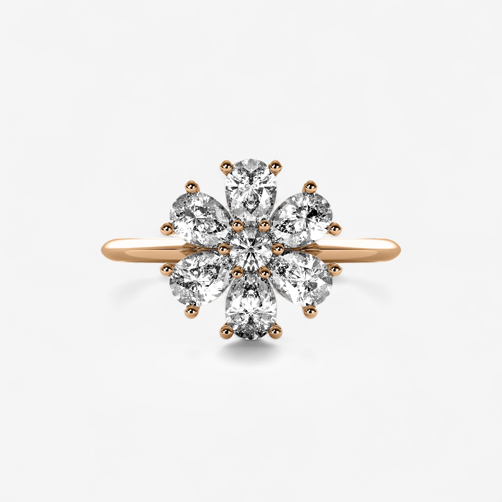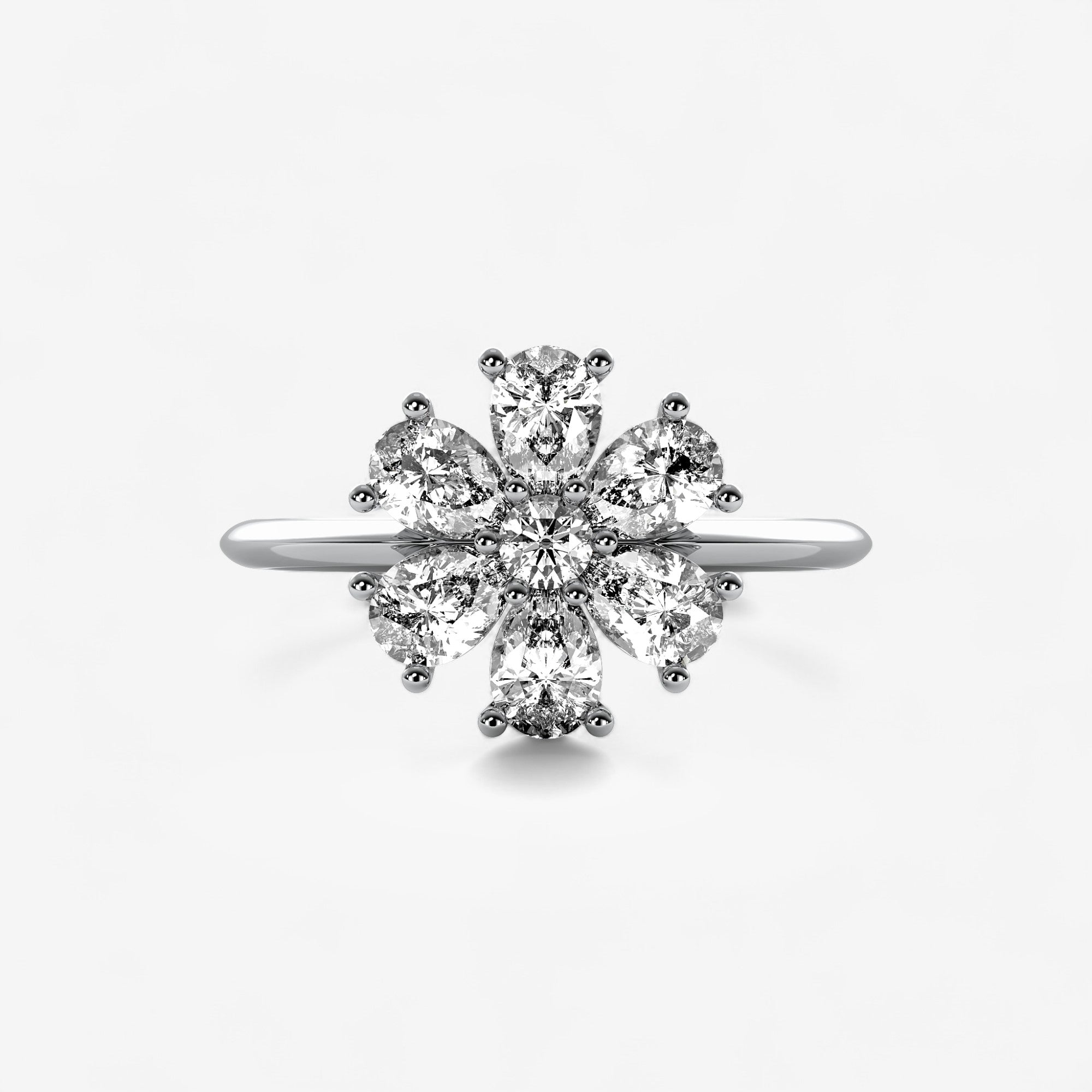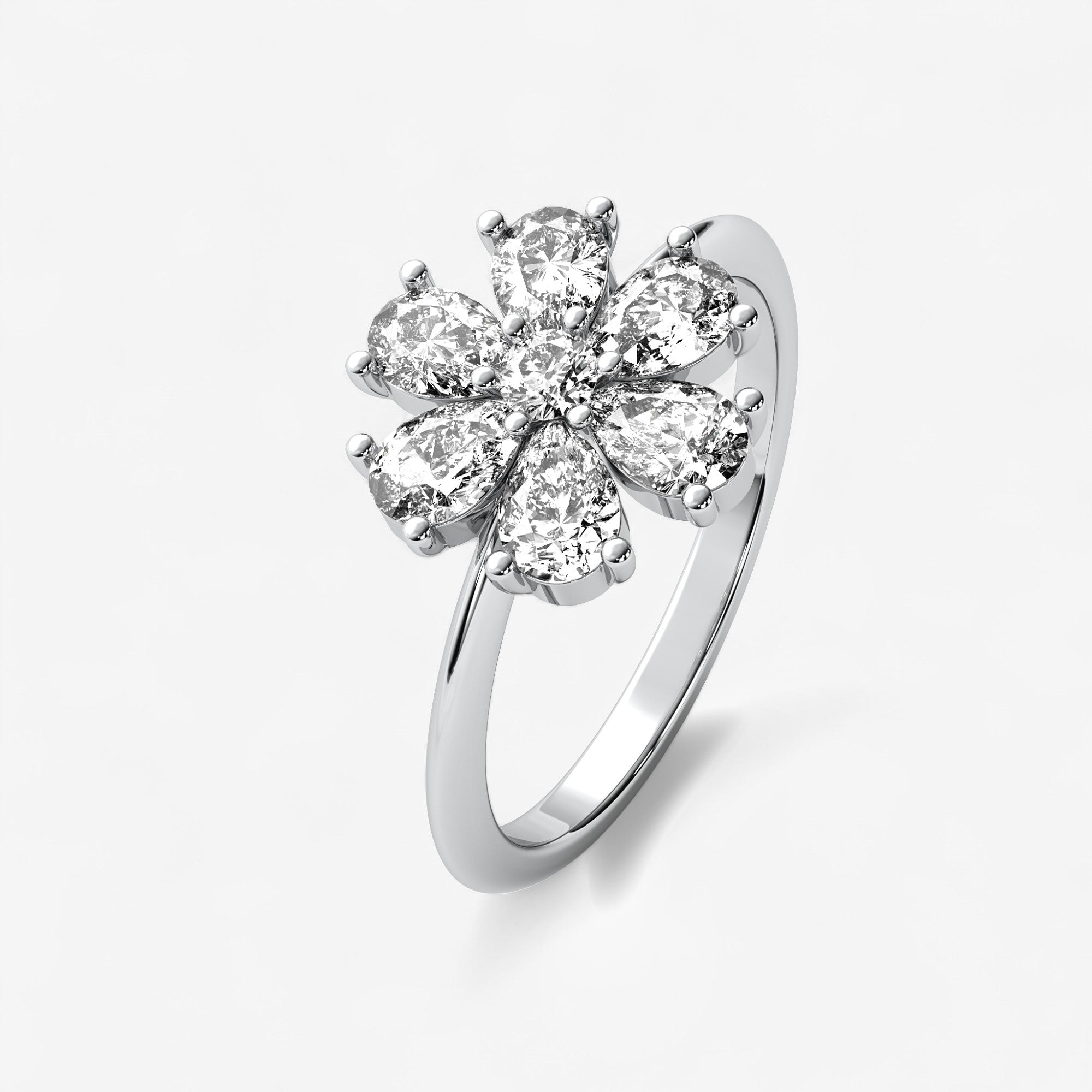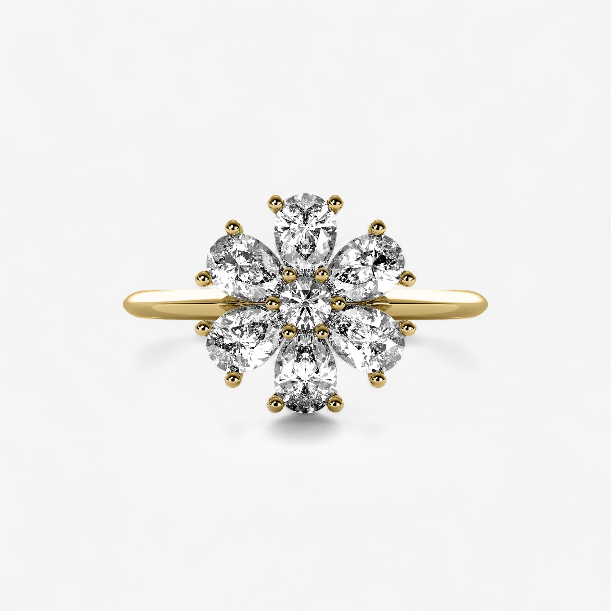 Unleash your inner flower child with our Pear Shaped Diamond Flower Ring. Featuring a stunning design and 1 tcw of diamonds, this ring will definitely make a statement. Perfect for the unique and playful stylist in all of us!
